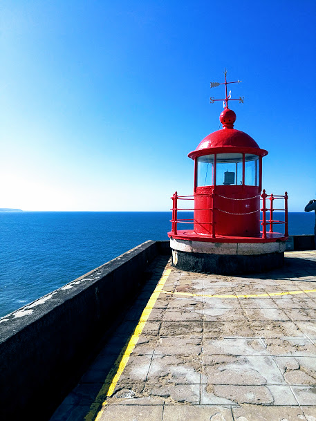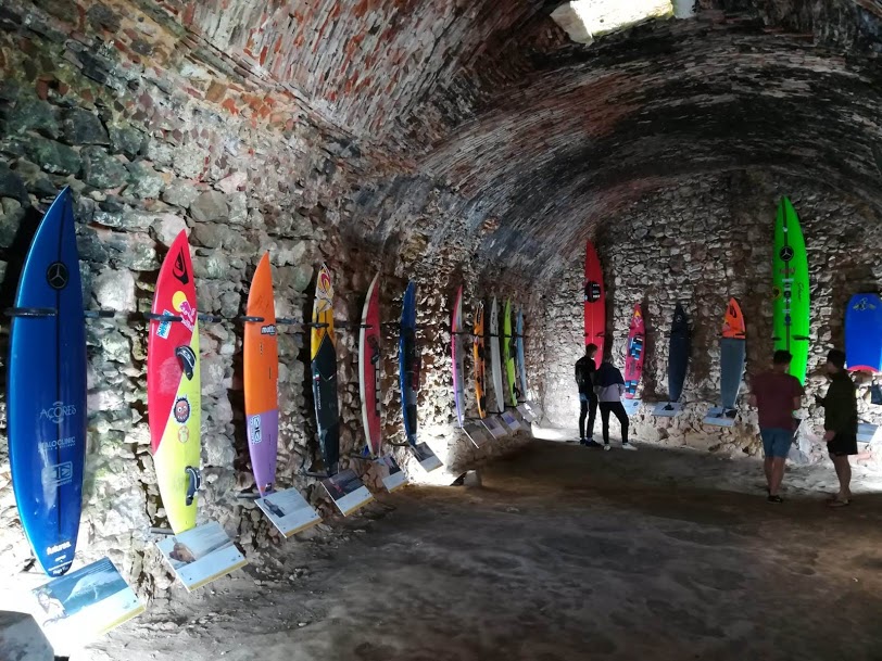 L’incubo peggiore di un surfista in surf trip è ovviamente quella di beccare anche solo una giornata di calma piatta. In quelle poche ore vedrete il ragazzo svuotato, smarrito, senza più uno scopo nella vita. Inizia la ricerca disperata di un onda anche di pochi centimetri da surfare, un appiglio per poter salvare la giornata. Un giorno senza surf, è un giorno perso! L’Oceano ci ha fregato e ci ha regalato una giornata di piatta totale, i surfisti in astinenza erano più di uno e si doveva trovare una soluzione. Prendiamo mute, tavole da surf e macchine e si parte, tutte le webcam dei dintorni danno condizioni “flat” ma i surfisti non ci credono e devono andare a vedere di persone! Nel pellegrinaggio per trovare “l’onda perfetta” siamo finiti nello spot che produce le onde più grandi del mondo: Nazaré. Abbiamo visitato il magnifico faro che si staglia tra le onde enormi. Guardando l’orizzonte risulta impossibile immaginare che davanti a quel faro si possano formare onde altre 30 metri, 9/10 piani di un abitazione. Ed è assurdo pensare che ci sia gente così matta da surfare quelle onde. Dentro il faro troviamo un piccolo museo con le foto delle onde più spaventose, le tavole che sono riuscite a surfare quelle onde (integre o rotte, amputate) e la muta che indossano i big wave rider con imbottiture per proteggersi dall’enorme forza dell’acqua. Vi giuro, non vorrei mai essere al loro posto!