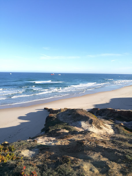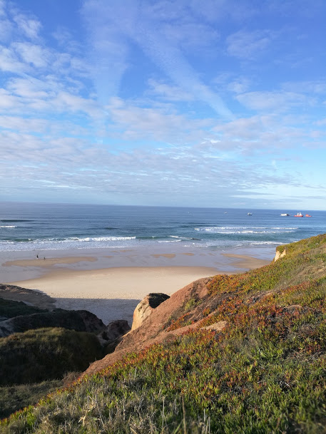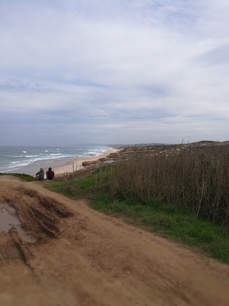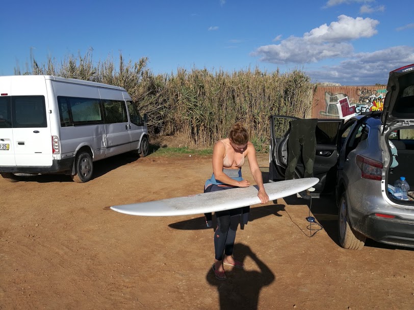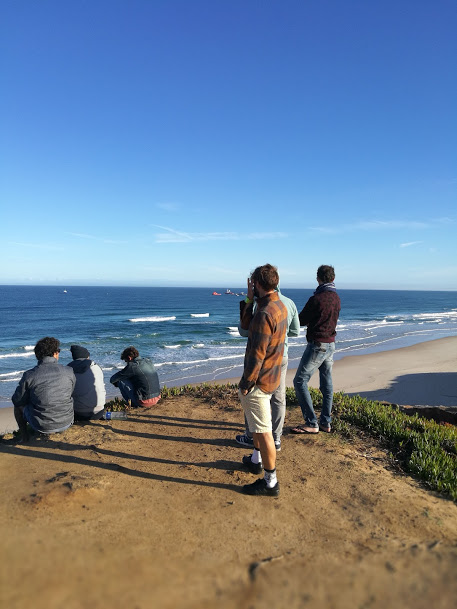 Prendiamo il volo, dopo un anno dall’ultimo aereo preso, sempre un emozione (per me terrorizzante) volare, ma pur sempre una grande emozione. Arriviamo a Lisbona nel primo pomeriggio, attendiamo che scarichino le nostre tavole e ci dirigiamo verso l’autonoleggio a ritirare i nostri super mezzi. I ragazzi non stanno nella pelle, hanno voglia di tuffarsi nell’Oceano e appena finiamo il disbrigo di tutti i moduli dell’autonoleggio partiamo in direzione Carcavelos, una spiaggia a 12 km a Ovest da Lisbona. Mangiamo qualcosa in un baretto sulla spiaggia e poi i ragazzi si cambiano ed entrano in acqua. Cosa c’è di meglio di inaugurare un surf trip se non con una session ancora prima di arrivare a destinazione?